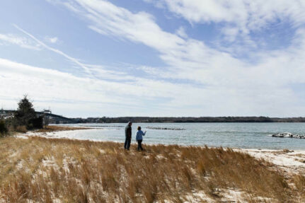 On the main beach, a 970-foot living shoreline is protected on one end by a headland breakwater made of stone riprap, which has created a cove where sand can accumulate, creating marsh wetlands, upland dune habitat and recreational space, Breeden said. After being built up by dredged sand, the beach is being further stabilized by thousands of planted marsh plants and native dune grasses. Small cobblestone added to the beach in front of waterfront homes is able to shift with wave action, a technique developed in recent years to allow a shoreline to respond to rising sea level.