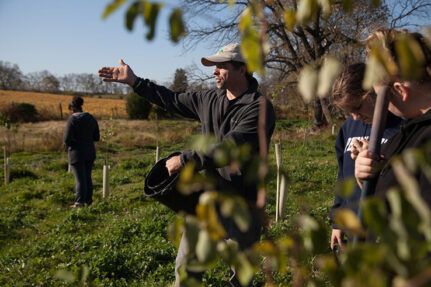 In April, students from Benjamin Franklin High School in the nearby neighborhood of Brooklyn gathered at the Masonville Cove greenhouse for the first planting under the program. Roffe showed them how to remove the plants from their containers and use trowels to work them into raised beds. Digging alongside the students was their science teacher, Hillary Clayton.