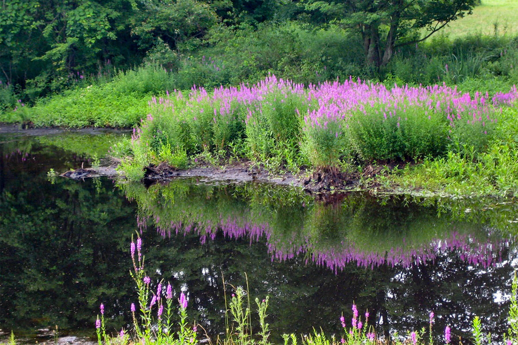 Purple loosestrife is a perennial plant with spikes of bright purple flowers that bloom in mid-to late summer. Native to Europe and Asia, the plant was both accidentally and intentionally introduced in the 18th and 19th centuries. Ship ballasts unintentionally carried the tiny seeds to North America while others planted it for its aesthetic value and healing properties.