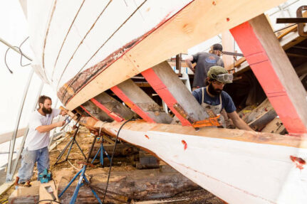 Enter the working shipyard at the Chesapeake Bay Maritime Museum in St. Michael's, Md. and you will discover a community of shipwrights and apprentices of different generations working together through a shared appreciation for craftsmanship, resourcefulness and the smell of freshly planed wood. It is a rare sight to see in this day and age, but at the museum, the vintage construction is on full display as this team of boat builders creates a historically accurate replica of the 17th century, Maryland Dove.