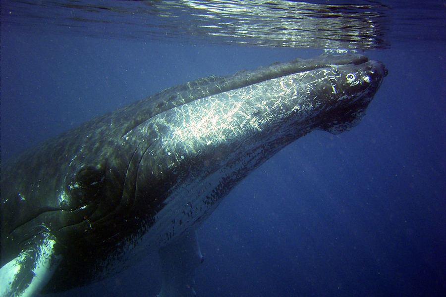 Humpback whales can live for 75 to 95 years and survive on a diet of fish, plant matter and plankton. Though they tend to be opportunistic feeders, eating whatever is readily available, they do have a few clever hunting techniques. The simplest is to lunge through large groups of plankton or fish with an open mouth. Extra water is pressed out, while the food is caught in the whale’s baleen plates—the whale’s bristly teeth-like structures—and eaten.