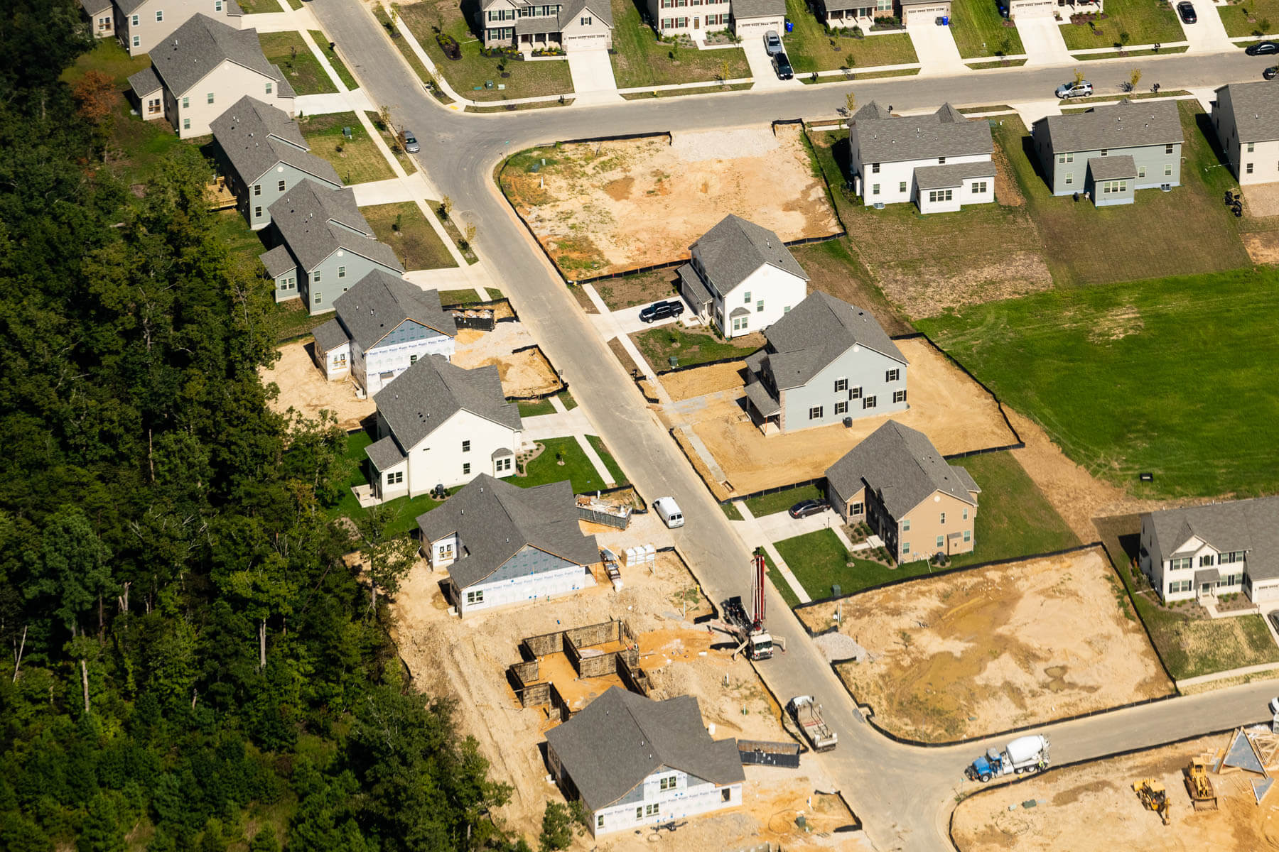 Once construction is complete, companies try to restore the green look of the land by rolling carpets of half-inch sod over the compacted soil. To help the new construction look welcoming as quickly as possible, fertilizers are often applied to speed the process. On the surface it looks green and luscious, but it is essentially a skin of shallow roots over dead dirt. When it rains, the water stops at the dead, compacted dirt underneath the sod and cannot soak into the ground. Yards flood, and the excess water—now filled with extra fertilizers from the lawn—joins the rest of the stormwater impacting that town.
