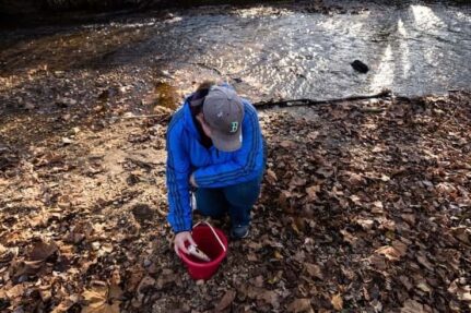 Scientists tracking an animal can analyze many samples throughout an area while looking for a specific species. Other times, scientists want an overall picture of the community, so they analyze the eDNA from a few samples and document all the species present. Both methods considerably cut down on the cost and effort associated with repeated sampling. Having to physically scour every inch of a stream to get a comprehensive sense of community is intensive, and often doesn’t yield productive results. Taking a few water samples from a stream is more efficient and, often, much cheaper.