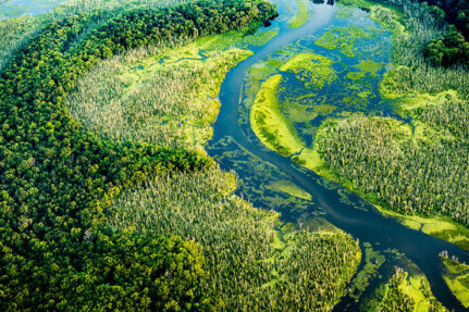 The headwaters of Mattawoman Creek flow through the 1,300-acre Mattawoman Natural Environmental Area in Charles County, Md., on July 21. The estuarine parts of the creek are considered a model for a fully restored Chesapeake Bay. (Photo by Will Parson/Chesapeake Bay Program)