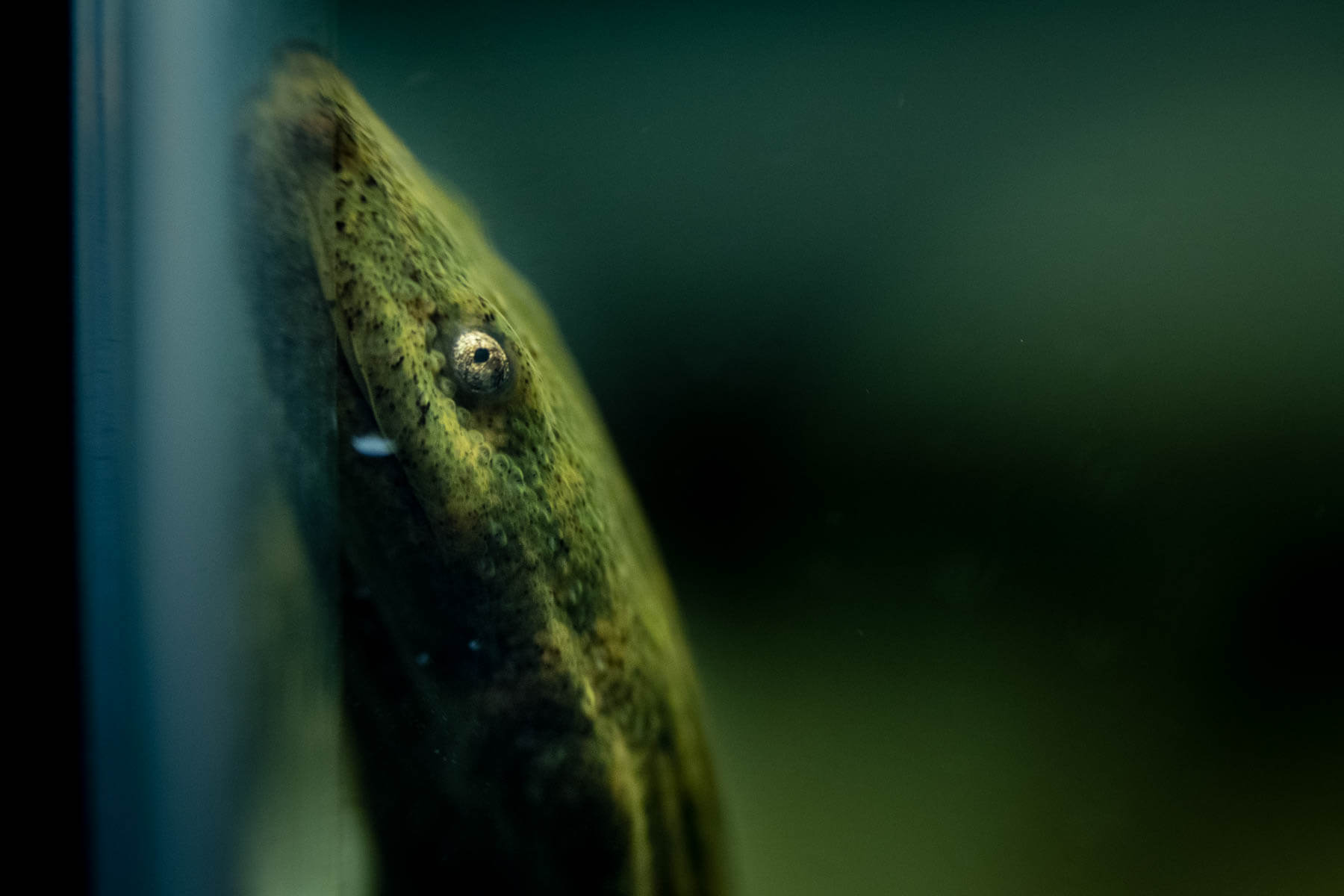 A two-year-old Eastern hellbender, photographed on Oct. 1, is one of 100 that are being raised in captivity in central New York in order to be released into the Susquehanna River watershed. Hellbenders need cold, clean, and swift-running water to survive and reproduce, and the species has declined significantly in recent decades. (Photo by Will Parson/Chesapeake Bay Program)