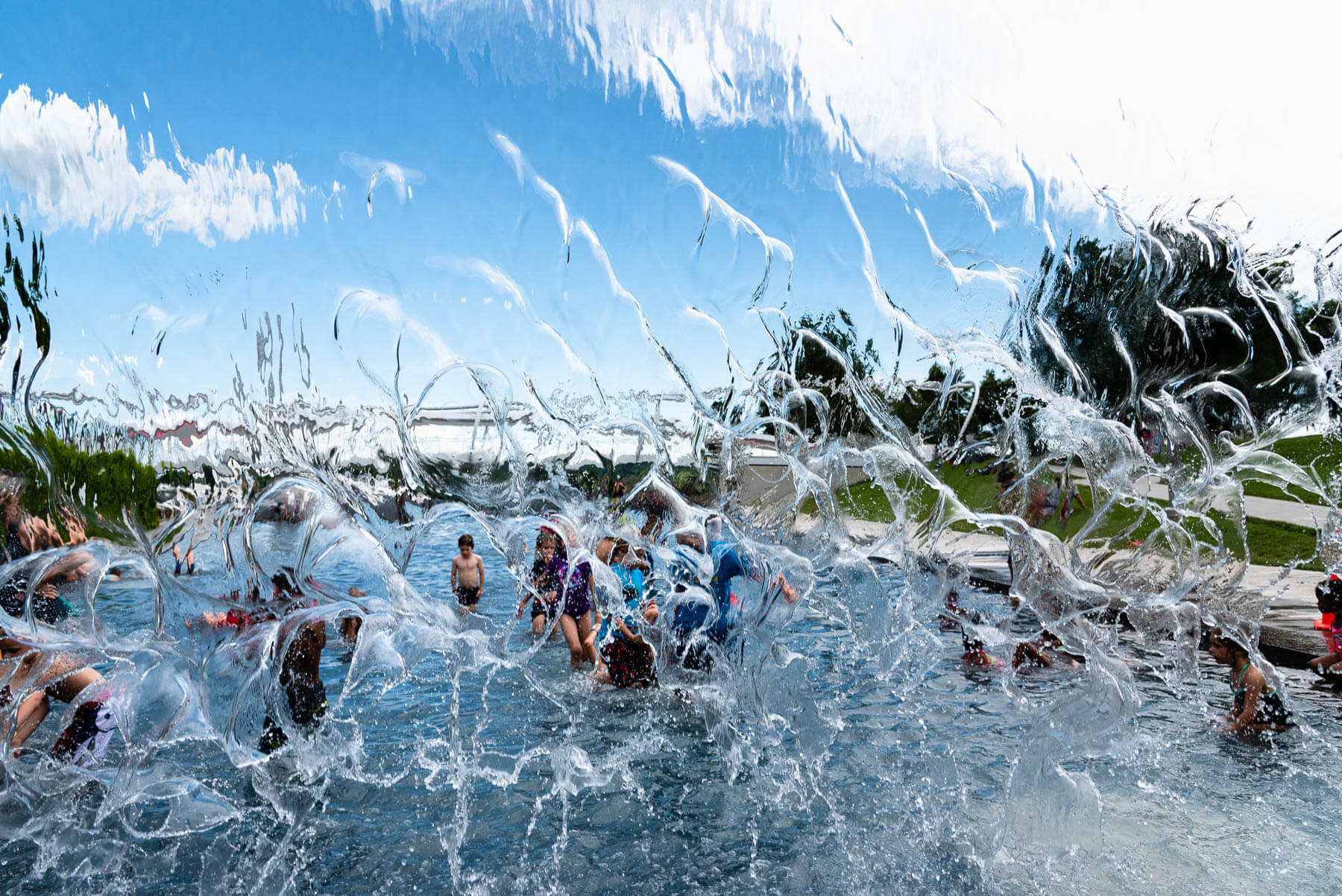 Visitors to Yards park in Washington, D.C., play in a fountain on June 5, 2018. (Photo By Kaitlyn Dolan/Chesapeake Bay Program)