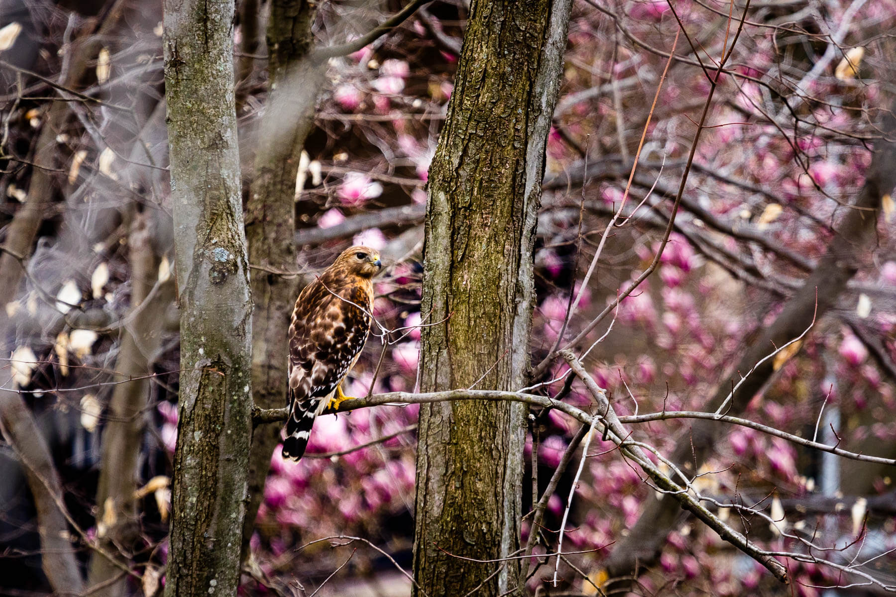 A red-shouldered hawk visits a forested portion of a residential complex in Annapolis, Md., on April 1, 2018. (Photo by Will Parson/Chesapeake Bay Program)