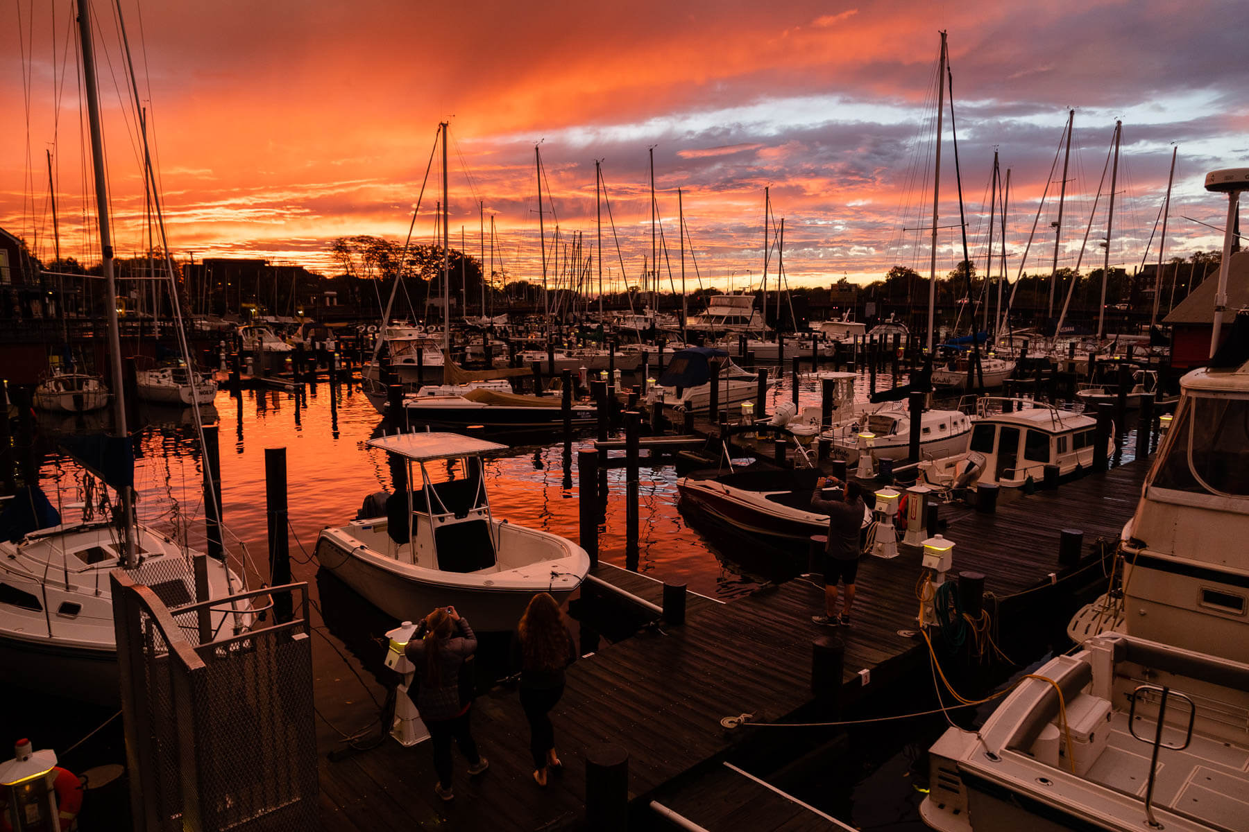 Sunset near the offices of the Chesapeake Bay Progam in Annapolis, Md., draws spectators on Nov. 6, 2018. (Photo by Will Parson/Chesapeake Bay Program)