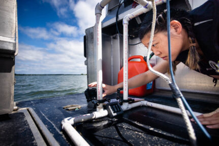 Joyce Luk, an intern with Minorities in Aquaculture (MIA), works at Orchard Point Oyster Co. in Queen Anne's County, Md., on Aug. 11, 2023. Luk's interest in the internship program was sparked by a passion for sustainable foods like kelp. MIA was founded by Imani Black to support young, minority women to create a more diverse and inclusive aquaculture industry. (Photo by Marielle Scott/Chesapeake Bay Program)