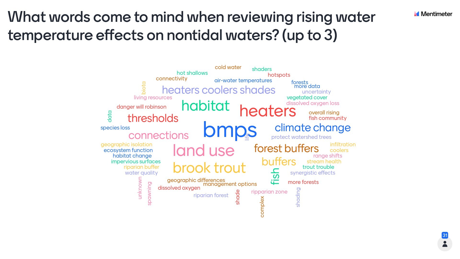 - Water Temperature Effects on Fisheries and Stream Health in Non-Tidal Waters (#1):Menti Question [JPG, 1.3 MB]
