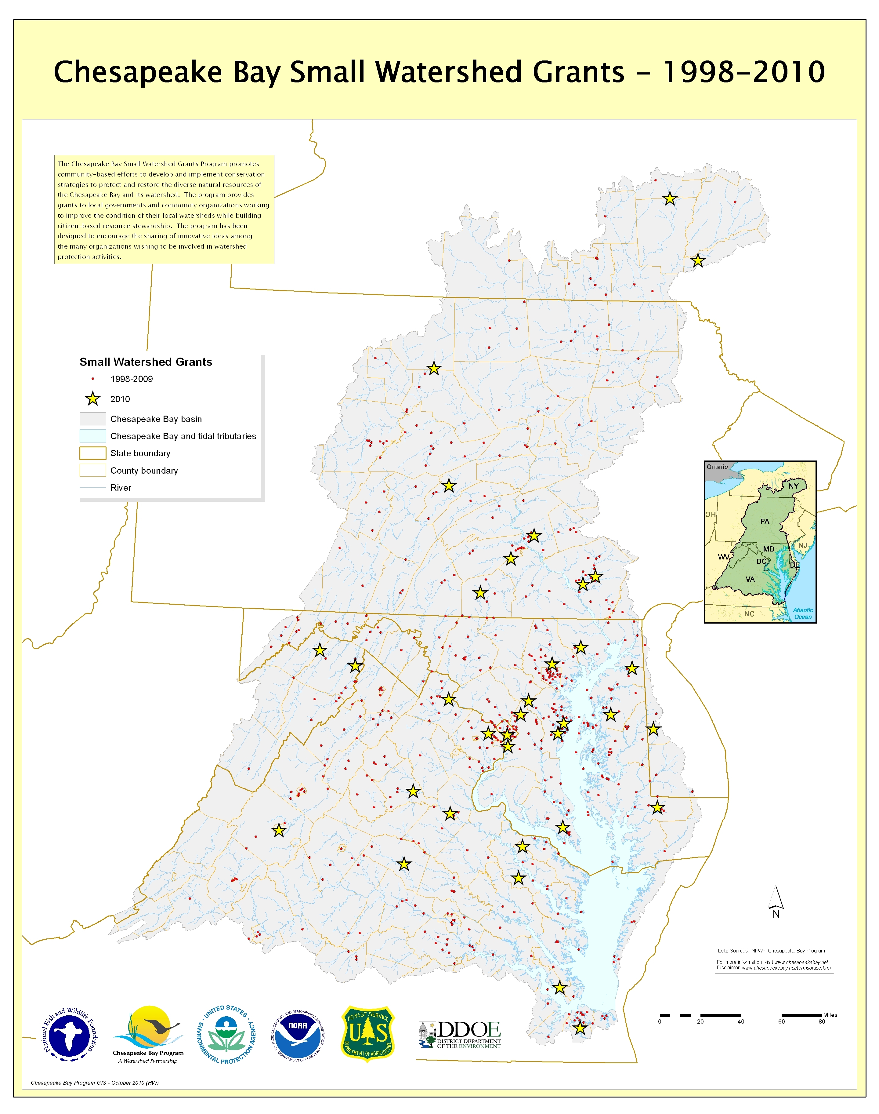 Publications Map: Chesapeake Bay Small Watershed Grants - 1998-2010 (JPG) Publication date: November 4, 2010 Description Map of Chesapeake Bay Small Watershed Grants - 1998-2010 (JPG) View document [JPG, 3.4 MB]