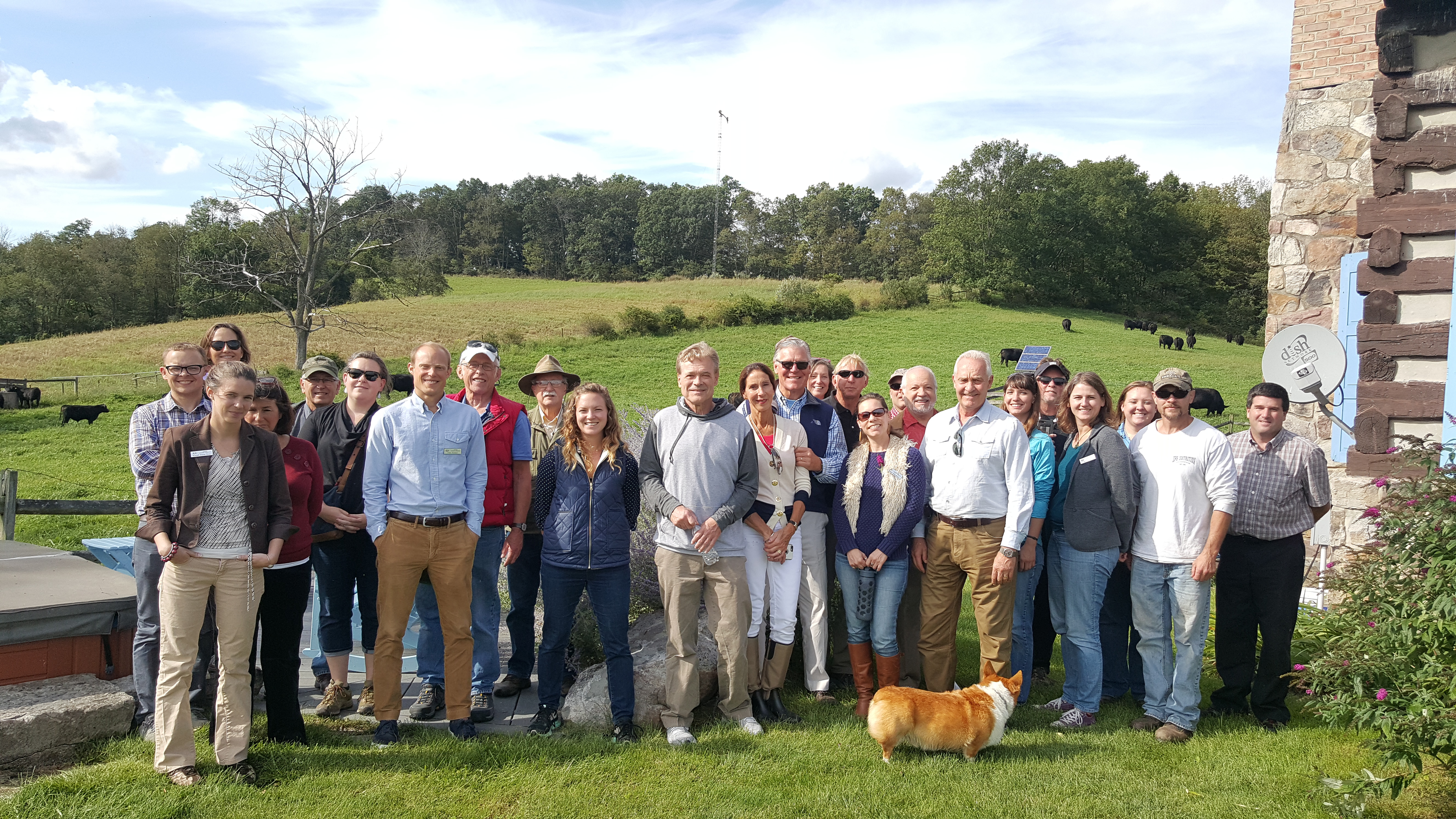 More than a dozen members of the Stakeholders' Advisory Committee stand together smiling.